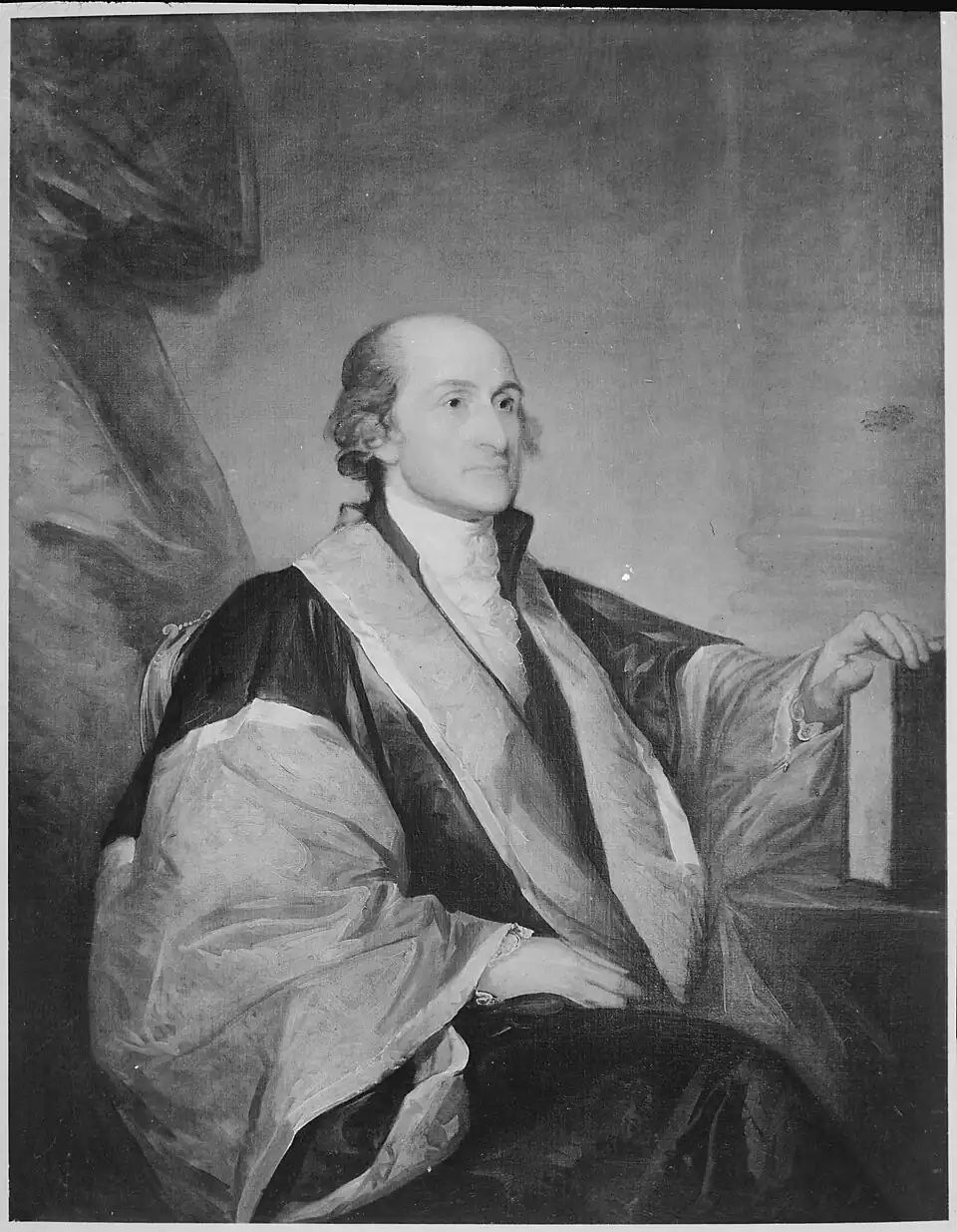 JAY, John, American statesman and jurist: b. New York, 12 Dec 1745; d. Bedford, Westchester County, N. Y., 17 May 1829. His father was a wealthy merchant of Huguenot stock; and his mother a daughter of Jacobus Van Cortlandt. His father, — early discovering, to use his own words, that Jay was of “a very grave disposition, and took to learning exceedingly well” — sent him to a school in New Rochelle similar to Dotheboys Hall in ‘Nicholas Nickleby.’ Three years at school were followed by study under a tutor until he entered King's College at 14. He was graduated in 1764, the subject of his oration being the blessings of peace, of which he was to have still keener appreciation. Two weeks later, on payment of £200, he entered the office of Benjamin Kissam, a prominent lawyer of New York, as an apprentice bound to serve five years, the last two years to be devoted to the study of the law. Admitted to the bar in 1768, he soon attained prominence in the profession, forming a partnership with Robert R. Livingston, afterward chancellor of the state, and secretary of foreign affairs. In 1773 he began his public career, as secretary to the Royal Commission to determine the boundary between New York and Canada; and for the following 28 years his public services were constant, varied and of supreme importance to the country so fortunate in being his birthplace.