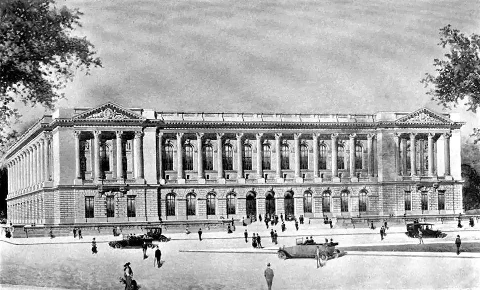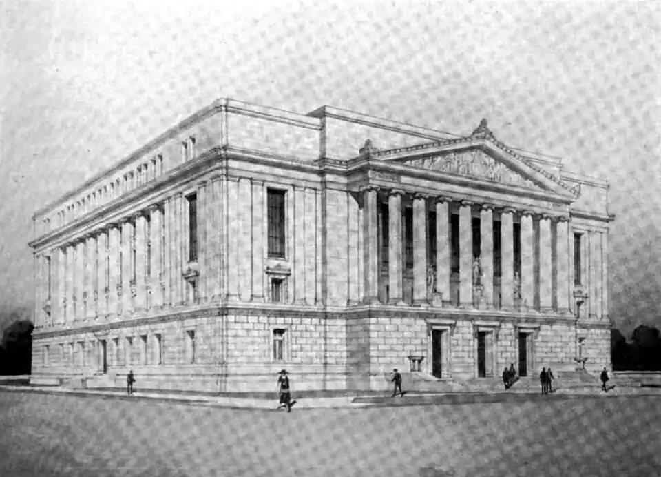 The Chicago Public Library assumes a position next to that of the Boston and New York libraries, but differs from them to the extent that it is, in fact, as well as in name, a popular library. Its collections are restricted in the main to books that would be called for by the general public and not by the scholar; the student of literature and the humanities being left to the Newberry, and the one in science and the useful arts to the John Crerar. The same principle applies to the building, which is an imposing but simple Renaissance structure, the idea of fitness for use being uppermost. This building was erected in 1898. It is an interesting fact that the Chicago Library originated in a gift of 7,000 books gathered in England by Thomas Hughes, the author of ‘Tom Brown at Rugby,’ and presented to the people of the city after the great fire of 1871. This humble nucleus has grown into a collection of about 800,000 volumes distributed through the central library and its 45 branches.