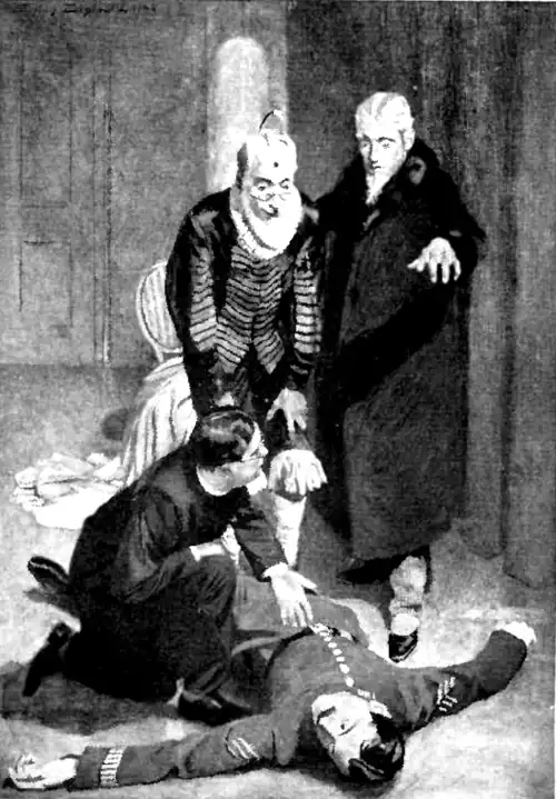 He followed his summoner with increasing doubt, which was not dispelled by a solemn comicality in the scene of the study. There sat Colonel Adams, still unaffectedly dressed as a pantaloon, with the knobbed whalebone nodding above his brow, but with his poor old eyes sad enough to have sobered a Saturnalia. Sir Leopold Fischer was leaning against the mantelpiece and heaving with all the importance of panic.