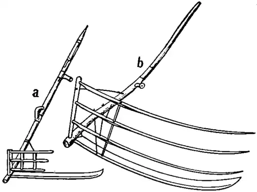 pushed through the grain by a team hitched in