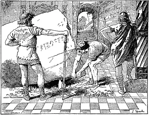Neither of them could so much as stir it, but as soon as he touched it, away it flew to a distance, though it was ever so big—big as a hill. And when he had flung the stone aside, he spoke a second time to his brothers, saying: