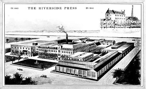 The Riverside Press of Houghton Mifflin Company is attractively situated on the banks of the Charles River, between Western Ave. and River St., Cambridge, Mass., where the business has been located since 1852, having previously been on Remington Street. It was founded by Henry O. Houghton, who was born in Sutton, Vt., in 1823. He began as a newspaper apprentice at the age of thirteen, worked his way through the University of Vermont, and became, during his forty-three years at the head of The Riverside Press, one of the most distinguished and successful American printers.