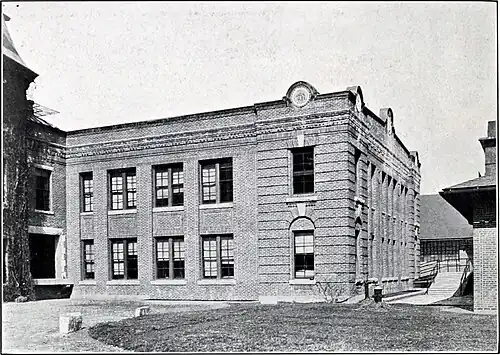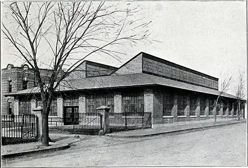 During 1910 the accommodations of the Press Building were greatly enlarged by the addition of a new L-shaped building extending 228 feet to and 122 feet along Blackstone Street. It is a single story structure with large steel-sash windows on all sides and having