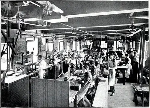 There is no other trade in which the traditions and tastes hark back to first principles to the extent that obtains in book-making. This is one reason why the personnel of The Riverside Press is far above the average of a factory. Here the old-time custom of apprenticeship, under which some of the world's best printers learned their trade, is still in vogue. Long service is the rule, several employees having had records of more than fifty years, while not a few others have been employed for thirty or forty years. It is not uncommon to find succeeding generations of one family represented in the different departments. Nearly every branch of the work requires a high degree of intelligence and education. A spirit of sympathy and assistance in time of trouble and distress, especially indicated by the Riverside Press Mutual Benefit Association, results in good feeling which contributes to the happiness of those