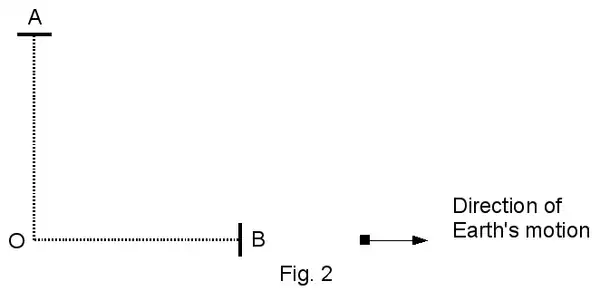 Such an alternative assumption, as to the velocity of light, which would cause none of the complications introduced by the second postulate, is possible. The velocity of light and other electromagnetic propagations might not be independent of the motion of the source, but their velocity and that of the source might be additive. This assumption would be very simple, would be no contradiction to the first postulate of relativity, and would directly explain all our failures to detect an ether drift. It is not difficult, for example, to see that this assumption does directly explain the Michelson-Morley experiment. If O is a source of light and A and B are mirrors placed a meter away from O, the Michelson-Morley experiment shows that the time taken for light to travel to A and back is the same as for the light to travel to B and back, in spite of the fact that the whole apparatus is moving through space in the direction of O—B, due to the earth's motion around the sun.