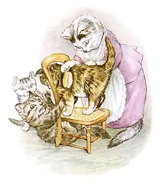 THEN she combed their tails and whiskers, (this is Tom Kitten).