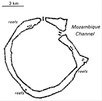 Note: navigational hazard since it is usually under water during high tide; located in southern Mozambique Channel about halfway between Africa and Madagascar