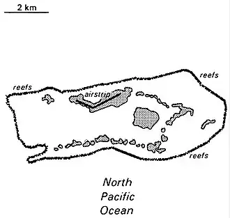 Note: located 1,600 km south-southwest of Honolulu in the North Pacific Ocean, almost halfway between Hawaii and American Samoa