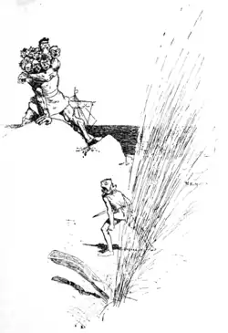 The troll then threw a bar of iron at Lillekort, which, falling on the ground, raised a pile of sand and dust.