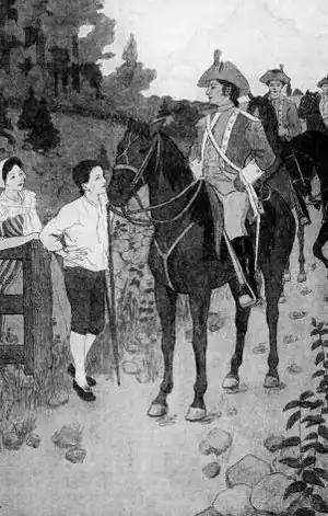 "For the moment. The ways divide a few rods beyond. Did the rebels pass this way?" asked an officer noticing Andy and Ruth.
