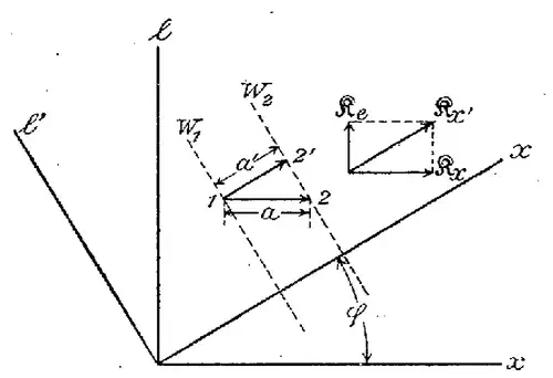 - ↑ A. Sommerfeld (l.c. p. 760) has shown, that also the transformation equation of the general six-vector, is represented in the same way.