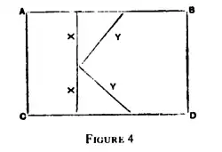 If the line be supposed to be affixed to all parts of the framework, and to loop over one another, and support one another (ABCD framework, X and Y two lines interlinked), it is obvious that they could assume all sorts of figures, and that the points on the plane would move in very complicated paths. Figure 4 represents a section of such a framework. Two lines XX and YY are shown, but there must be supposed to be a great number of others sloping backwards and forwards as well as sideways.