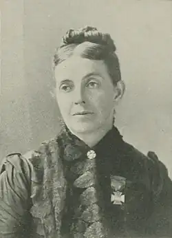 command. Mrs. McHenry accepted the position of deputy treasurer of Crawford county, Iowa, in the office of her husband's brother, who was treasurer of that county. When Mr. McHenry returned from the war, he settled in Denison, Iowa, where he has resided ever since. He is engaged in farming, stock-raising and the banking business. Mrs. McHenry has been the mother of five children, four of whom are living, two sons and two daughters. Although she is a woman who shrinks from public duties and prefers the quiet of home life, her readiness to assist in every benevolent and patriotic movement has drawn her into prominent public positions, and, as she has a considerable fortune in her own right, her charities are numerous. She has been in the work of the Woman's Relief Corps from the first. She was in the Denver convention, where the Woman's Relief Corps was organized, and soon after her return a corps was instituted in Denison. She has served with acceptability as corps, department and national president, and in various other offices. After serving her department as president, she accepted the office of treasurer.